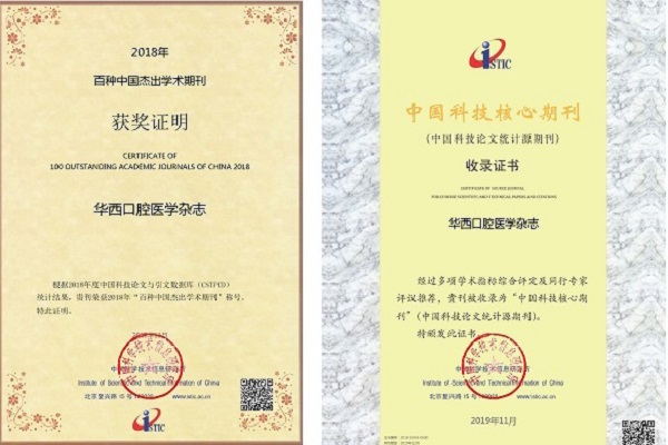 11月19日,中国科技论文统计结果发布会在北京国际会议中心隆重召开。在此次会议发布的各项数据和统计报告中,《华西口腔医学杂志》再次荣获“百种中国杰出学术期刊”和“中国科技核心期刊”,学科综合评价得分位列口腔医学类期刊第一。