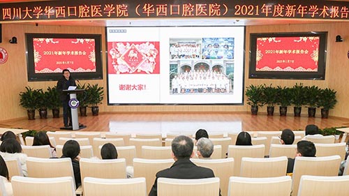 2021年1月7日,四川大学华西口腔医学院(华西口腔医院)、口腔疾病研究国家重点实验室、国家口腔疾病临床医学研究中心在学术报告厅召开了2021年新年学术报告会。全院科研人员、医生、教师、学生代表参加了会议,会议由副院长赵志河主持。