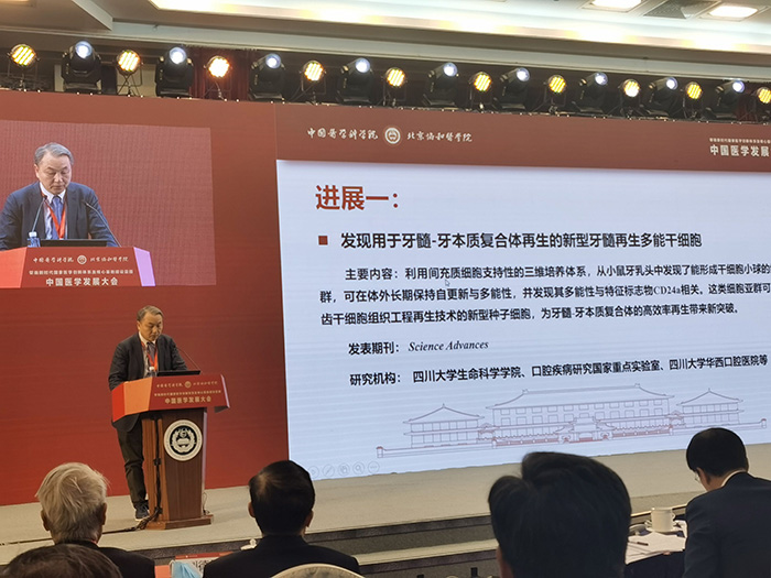 本次大会发布了中国21世纪重要医学成就/中国2020年度重要医学进展。中国2020年度重要医学进展遴选标准是2019年12月25日到2020年12月31日期间具有较高学术影响力和社会影响力,具有促进学科发展、促进临床诊疗、促进产业发展的潜力的进展。通过数据采集、初步筛选、多元化计量指标测算、专家研判及多主体评价指标测算、综合指数计算、学部委员研判及结果测算、终审委员会评审等程序,由我院田卫东教授团队完成的“发现用于牙髓-牙本质复合体再生的新型牙髓再生多能干细胞“入选口腔医学领域重要医学进展。该研究利用间充质细胞支持性的3D培养体系,从小鼠牙乳头中发现了一群在三维培养环境中能形成干细胞小球的细胞亚群。该细胞表达多种干细胞标志物基因并能在体外长期保持自更新与多能性,并发现其多能性与特征标志物CD24a相关。该类细胞可作为牙齿干细胞组织工程再生技术的新型种子细胞,为牙髓-牙本质复合体的高效率再生带来新突破。