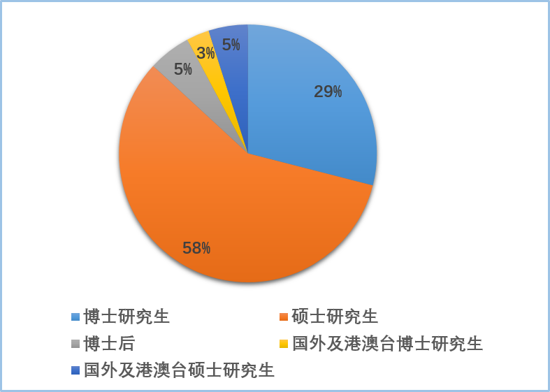 近五年,培养毕业博士研究生223人、硕士研究生445人;国外及港澳台博士研究生22人、硕士研究生38人;接收博士后研究人员41人。